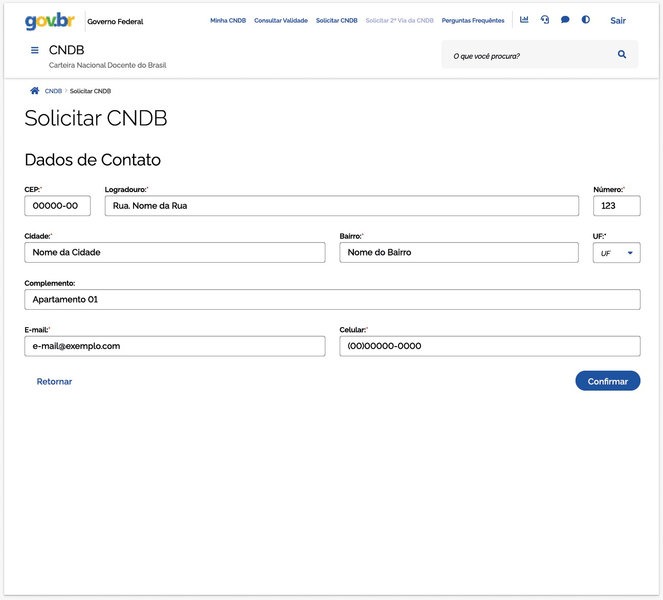 - Preenchimento dos contatos — Inserir endereço completo, telefone e e-mail. Todos os campos são obrigatórios.